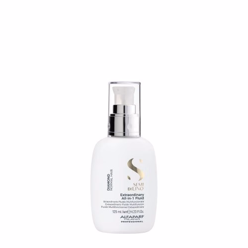 O Alfaparf Milano Semi Di Lino Diamond Leave-In Fluid All-In-One 125ml é um tratamento multifuncional que nutre, desembaraça e protege todos os tipos de cabelo. Enriquecido com o complexo Semi Di Lino Diamond, este fluido leve atua na fibra capilar proporcionando brilho intenso, suavidade e proteção térmica.