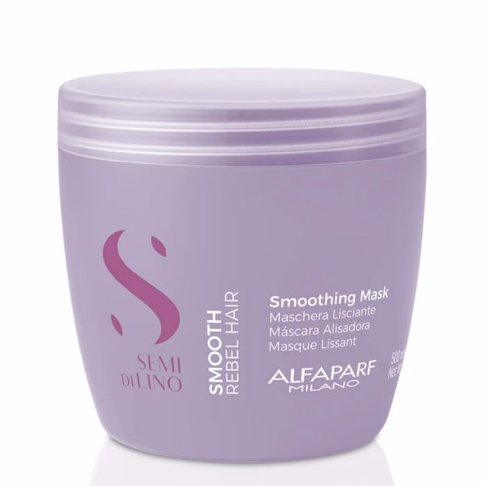 A Alfaparf Milano Semi Di Lino Smooth Máscara 500ml é um tratamento suavizante intensivo, desenvolvido especificamente para disciplinar e hidratar profundamente os cabelos rebeldes. Esta máscara atua diretamente na estrutura da fibra capilar, promovendo o alinhamento das cutículas e eliminando a aspereza característica dos fios indisciplinados. Consequentemente, ao utilizar este cuidado, o cabelo recupera a sua maleabilidade natural, tornando-se visivelmente mais liso, sedoso e com o volume sob controlo.