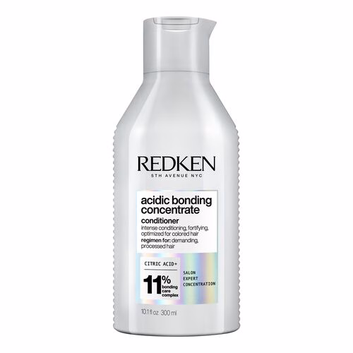 O condicionador Redken Acidic Bonding Concentrate é a fórmula mais concentrada da Redken para todos os tipos de cabelo e texturas. Este condicionador extremamente rico e luxuoso proporciona um condicionamento intenso, reduz a quebra e protege a cor. Contém ácido cítrico, um alfa-hidroxiácido, dentro do nosso complexo concentrado de cuidados que condiciona, ajudando a proteger ligações fracas e a melhorar a força e resistência do cabelo após uma descoloração ou serviços de coloração. Este condicionador com pH equilibrado é formulado especificamente com um pH ácido para ajudar a defender-se dos possíveis efeitos negativos que a coloração, o aclaramento e os penteados que utilizam fontes de calor podem causar. O resultado? Um cabelo que parece e se sente saudável.