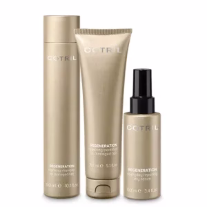 A gama Cotril Regeneration é o tratamento ideal para reparar a estrututra capilar, melhora a aparência do cabelo, a elasticidade e o pentear.