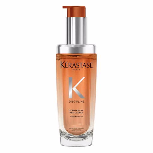 Além disso, a sua fórmula de alta performance é enriquecida com o complexo Morpho-Huiles, que combina óleos preciosos para nutrir profundamente sem pesar. Por outro lado, o seu novo frasco de vidro de 75ml é agora recarregável, unindo a sofisticação da marca a uma abordagem mais ecológica e consciente. Portanto, o uso do Kérastase Oléo-Relax Recarregável proporciona uma proteção térmica eficaz até 230°C, resultando num acabamento polido, sem fios rebeldes e com uma suavidade duradoura que resiste aos climas mais húmidos.