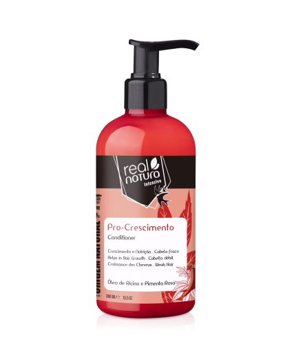 O Condicionador Pro-Crescimento da Real Natura foi criado para apoiar o crescimento saudável do cabelo, nutrindo e hidratando os fios desde a raiz até as pontas. A sua fórmula fortalece a fibra capilar, ajuda a prevenir a quebra e proporciona brilho e elasticidade, resultando num cabelo mais forte, resistente e vibrante. Ideal para quem quer estimular o crescimento natural sem comprometer a suavidade.