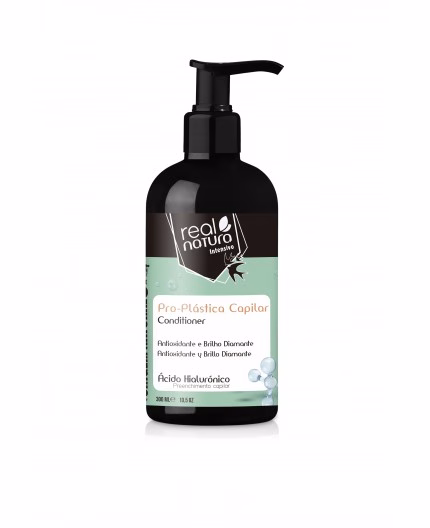Real Natura Pro-Plástica Capilar Condicionador Sem Sal: repara cabelos danificados por poluição, calor ou química, com ação antioxidante, devolve brilho, suavidade e densidade aos fios.
