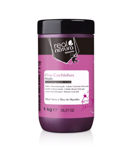 A Máscara Pro-Cachinhos da Real Natura foi criada para hidratar profundamente cabelos cacheados, crespos e secos, ajudando no desembaraço e reforçando a força dos fios.