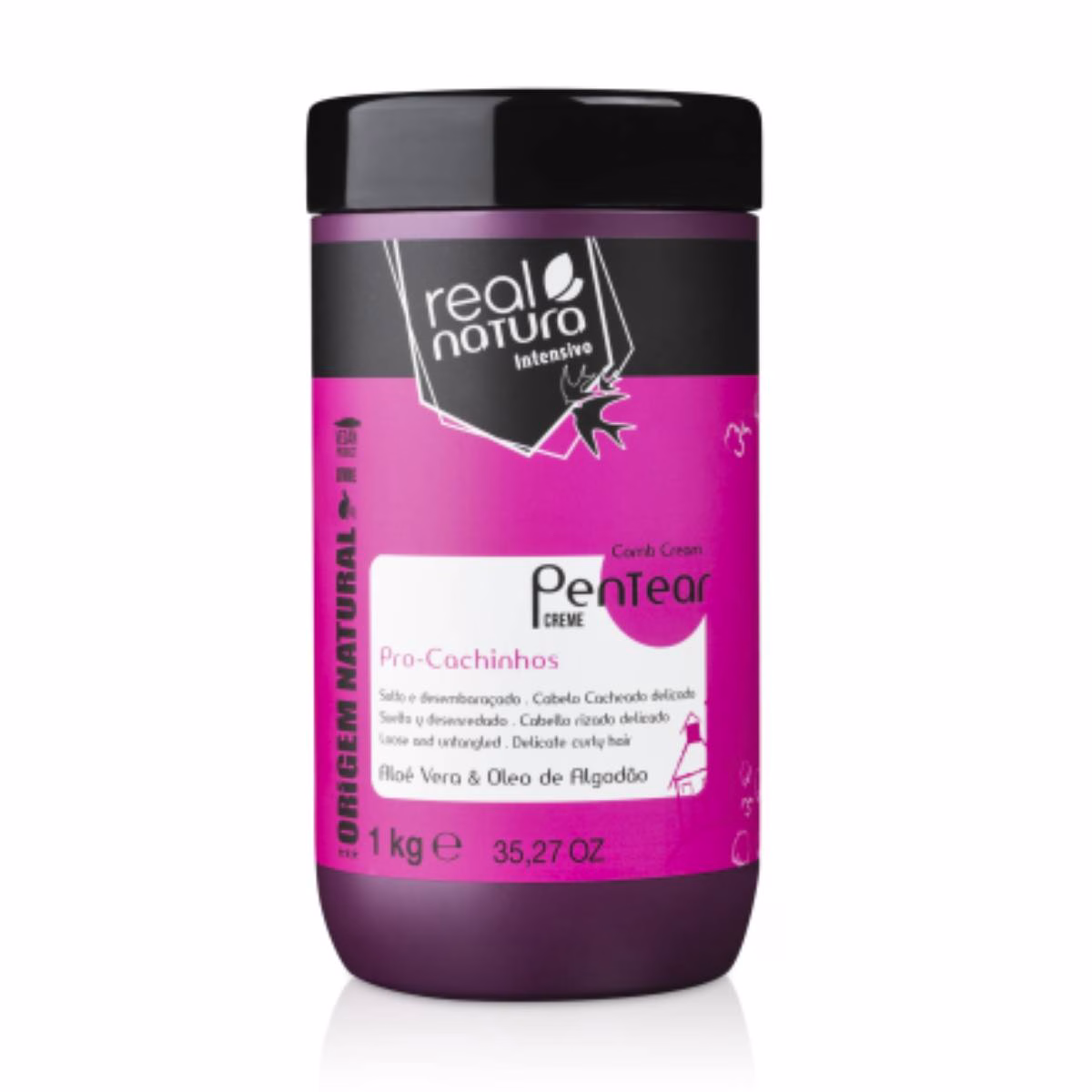 Real Natura Pro-Cachinhos Creme de Pentear 1kg define os cachos, reduz o frizz, facilita o desembaraço e deixa os cabelos macios e hidratados.