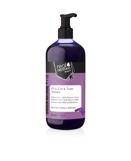 Champô Pro-Cor e Tom: neutraliza o amarelado, mantendo cabelos brancos hidratados e brilhantes.