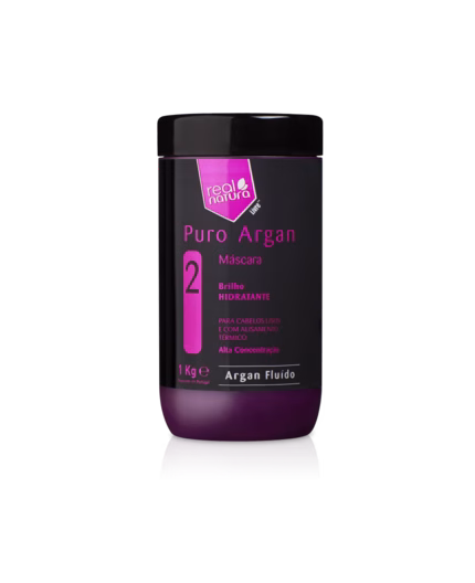 Máscara Real Natura Puro Argan 1 kg: nutre profundamente, repara e reforça o cabelo com brilho intenso e redução de frizz.