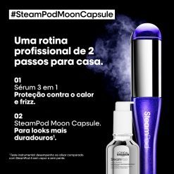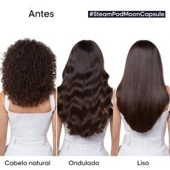 Utiliza o poder e a suavidade do vapor e transforma instantaneamente o teu cabelo, respeitando a fibra capilar, a cor e o brilho.